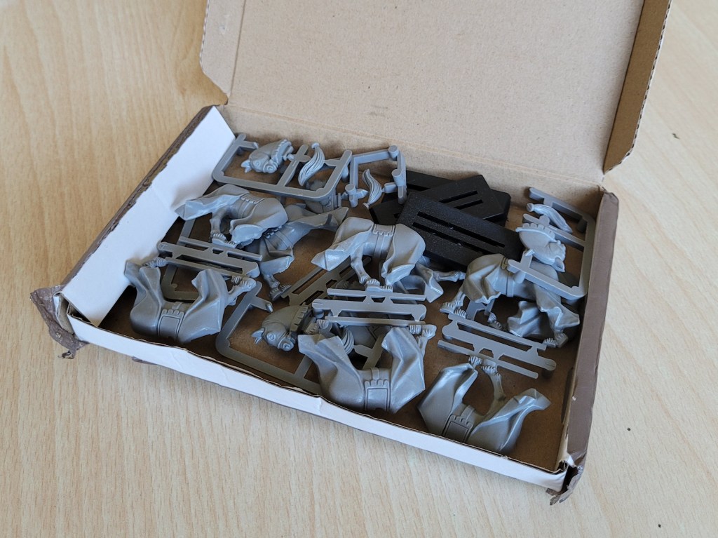 So if you remember back to the introduction post, models have a value assigned to them. We are aiming for five ‘points’ per week. A normal man (or lady!) is worth one point. A cavalry figure is worth three points. The logic for this is that the knight himself is about the same amount of work as one figure and the horse and horse coat are worth two. Let me tell you this now for nothing, that might be a bit of an underestimate of the amount of work painting these Bretonnian knights is going to take.
