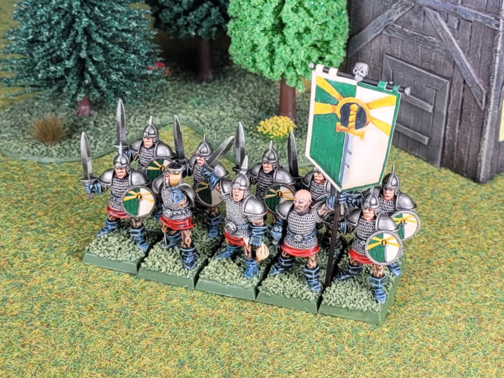This first photo is in the early 90’s style, which was most common between 4th and early 5th edition Warhammer Fantasy Battles. Pretty much front on, toxic green bases, toxic green ‘table’ and blue gradient background.