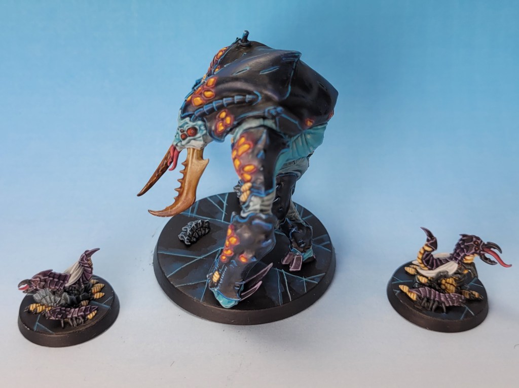 Phillipa and her babies were an absolute joy to paint. After a few weeks of Pyskers, Beastmen and Traitors all in basically the same drab colours, it was super fun to do some very high contrast blues and purples.
