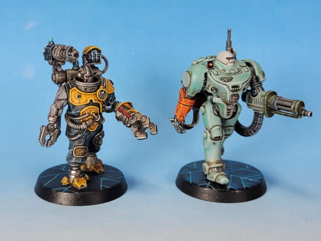 I find it very hard to imagine that X-101 wasn’t conceived for Blackstone Fortress at the same time as UR-025. Aside from the fact that they are both some sort of automatons; a half biological servitor in X-101’s case and an AI for UR-025, they both fill the same role in the squad of large, slow moving, tanky heavy weapon platforms. They are armed almost identically with a scary powerclaw and a man portable heavy weapon each and to top it all off they are in the exact same pose!