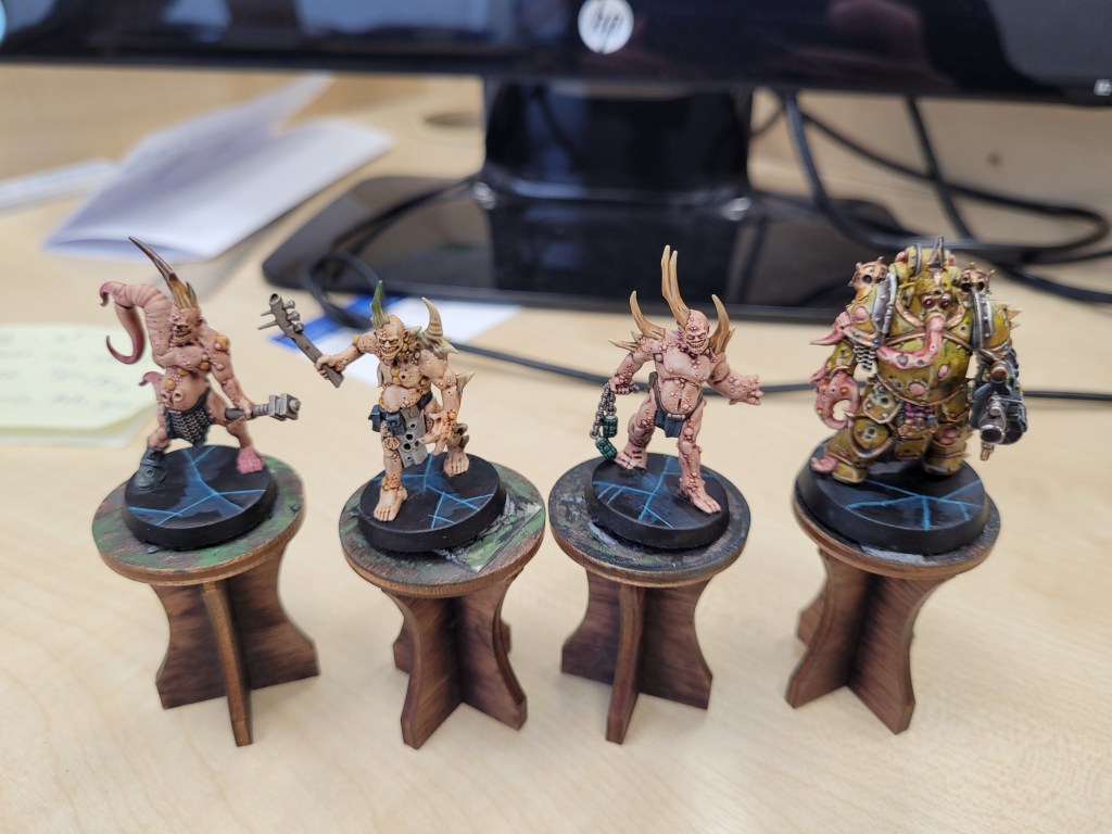 So, with No Respite and finishing the workspace both Key Priorities, neither of them can be let slip. So where’s the wiggle room? Ah yes, those luxurious couple of spare weeks at the end. By splitting the pox walkers across two weeks, I still had time to get them painted to a standard I was happy with, despite spending most of my free time on the buildings.
