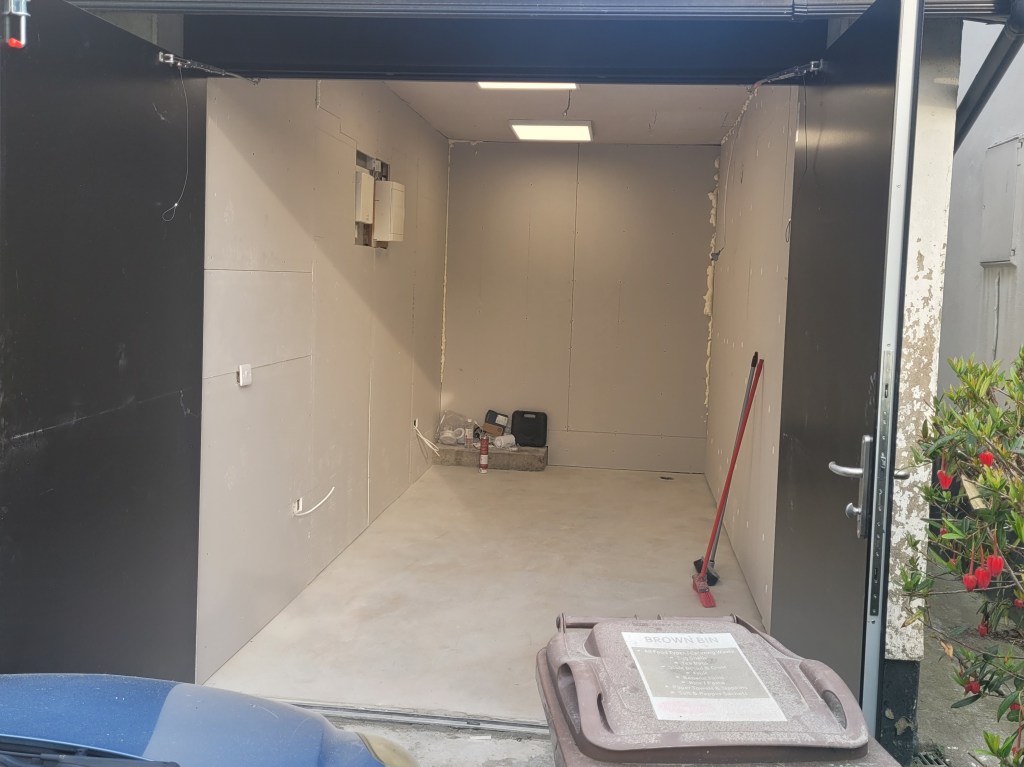 With all of that done, we now play the waiting game for the electrician to finish off the wiring, the following people to deliver and install the floor and the plasterer to skin the entire thing. Then it is the simple matter of painting the walls and assembling the furniture and shelving.
