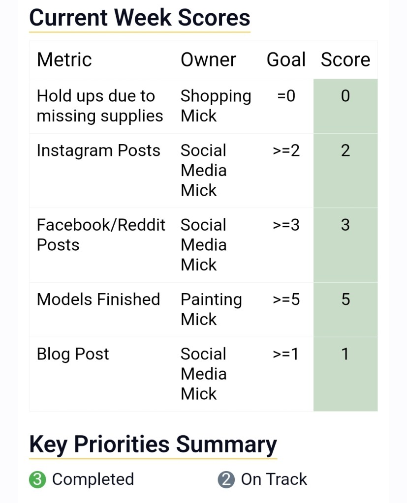 Dearest of readers, welcome back to Hammer the Backlog, the weekly warhammer mini painting, productivity and accountability blog, where this week your beloved author learned a thing or two about hubris, and not mucking about with plans after they are in motion. Let’s get started with a look at the scorecard for this week, before we move on to this weeks’ model(s) and have a look at how The Work on the Buildings is going. With only two weeks left of year 1, is it a case of “I love it when a plan comes together” or “No plan survives contact with the enemy”?