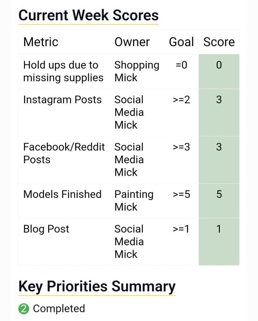Hello and welcome back to the final update for quarter one of the second year of Hammer the Backlog, my ongoing project to clear my unpainted backlog of Warhammer fantasy and 40 minis before the plastic in them breaks down and they disappear harmlessly back into the atmosphere. A little environmentalist joke there, to get you started. The week, as with any week that involves more video stuff than painting stuff, was a real roller coaster of emotional highs and devastating lows. Let’s start this quarterly round up, as with every other week, with a look at the scorecard.