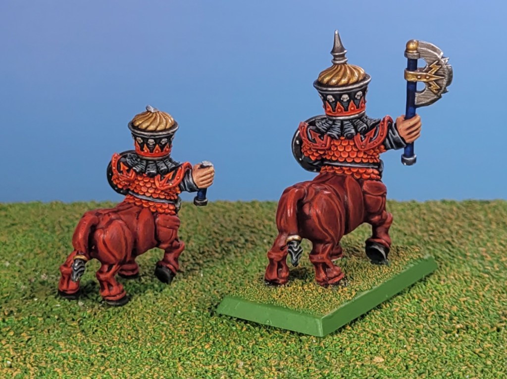 The main course for the week was my Bull Centaur. As the first of a unit of 5, he was the test for getting their colour scheme figured out. Of course, this was not my first time painting this model. Regular readers will remember that this model was my first ever 3D printed model, which I bought from an online printer over a year ago. In fact, he was my favourite single model of last year overall.