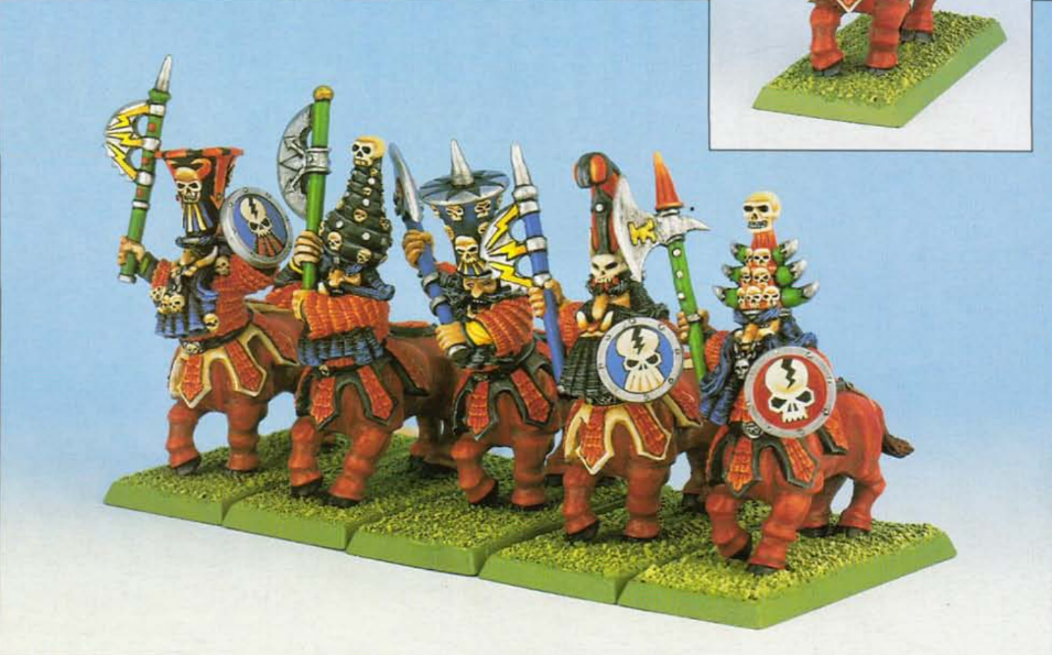 With these two done, the unit of 5 cavalry for my imaginary start box is done! Very few models left to go in this quarter now, despite the fact that there are 5 weeks left. I think I’m going to spend next week focussing entirely on the leader of this force, my Chaos Dwarf Lord on foot, then the last few weeks giving the Lamassu and Sorcerer the attention they deserve.