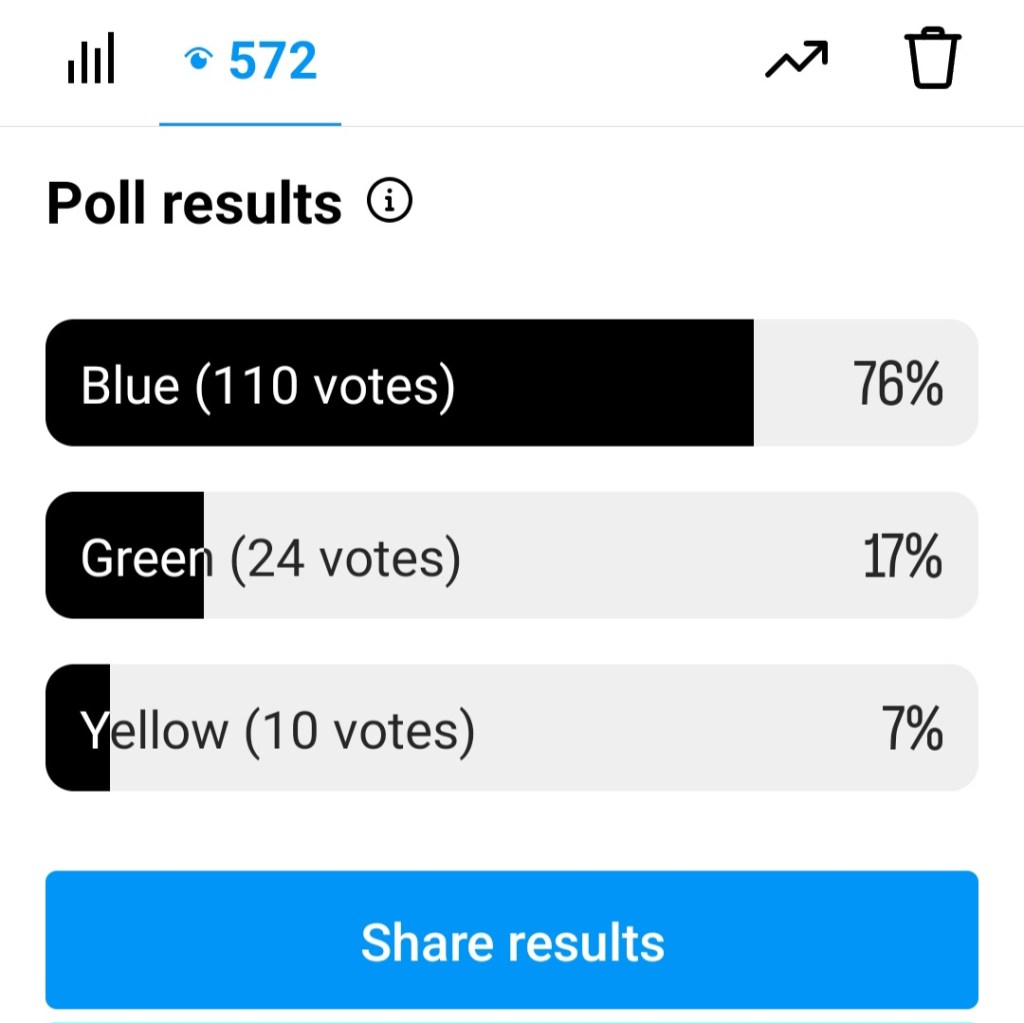 Sticking with blue absolutely smashed the other colours out of the park. Poor old yellow only got a handful of votes. And one absolute madlad wrote in Purple! What a world! So, far be it from me to go against the hive mind, blue it shall remain.