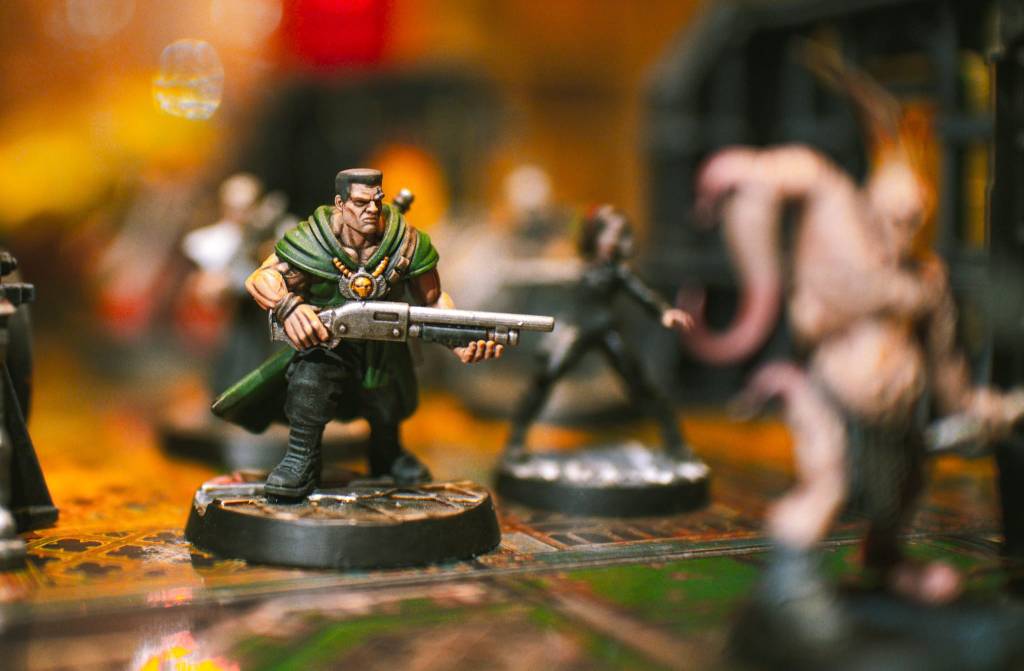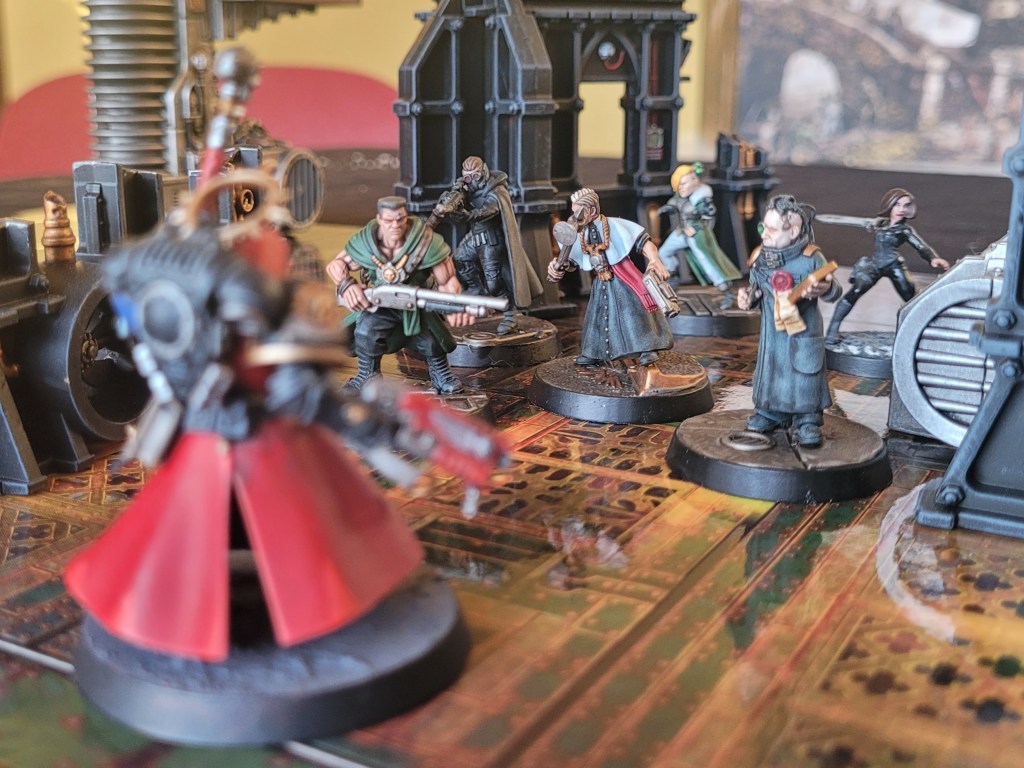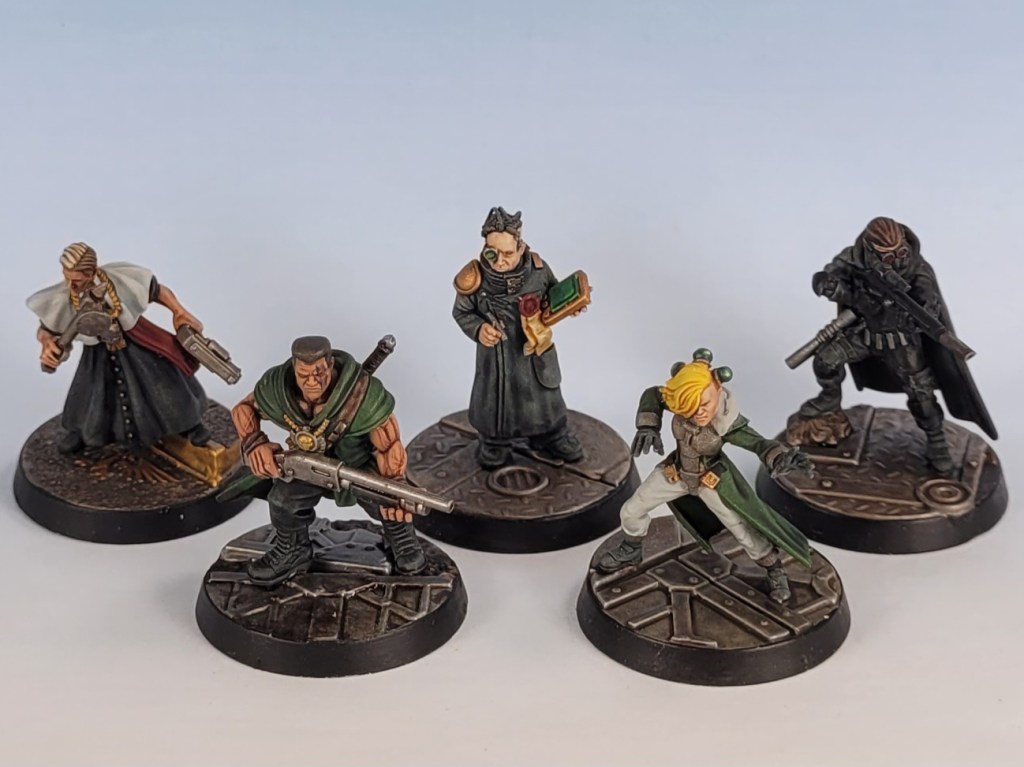 Cleric Jethro Shanks, the southern space gothic preacher and devoted son of the Emperor, who’s silver tongue can turn hearts and minds faster than any psyker. Eli “Grimm” Drake (or is it Sg. Titus Havelock?) the no-nonsense former guardsman and combat shotgun connoisseur. Obviator Secundus Drulax, the team’s slow talking logical mind, who will break out into a sprint and grapple you up in his gorilla-like arms the second you write him off. Nowan; the team’s gender non-binary, sanctioned (?) psyker and 80’s punk goblin. And Sinean, the group’s frighteningly efficient killer who makes everyone he meets (everyone!) uneasy. Not pictured (because the model I ordered took two and a half weeks to process!) is Mable Mars, upbeat lady investigator and crack pistol shot.
