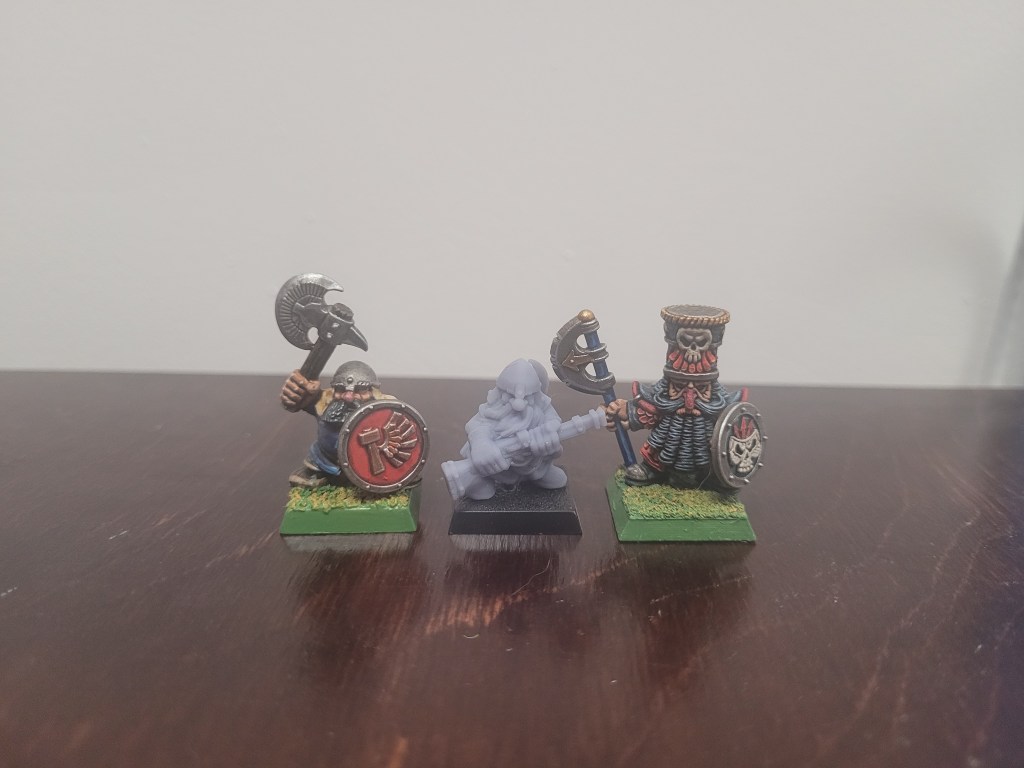 This week’s models are a real Christmas treat to myself! All round internet good egg Simone from Old Realm Forge is doing some classic style Dwarf 3d models. He was kind enough to send me the files a little early, and I took advantage of the Christmas holiday period, as well as the fact that I got a new supply of IPA and resin in my Christmas haul, to get them printed and painted up as quickly as I could. There were 8 models in this first batch, but I stuck to the Hammer the Backlog system of doing five at a time.
