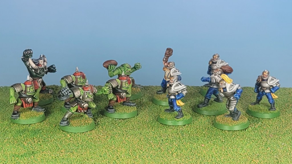 In the end, I did manage to knuckle down and get them done to an acceptable standard. This also has the added motivational bonus of letting me mark the first of this quarter’s targets, get my 3rd edition Blood Bowl Orc team, as complete. Nice!