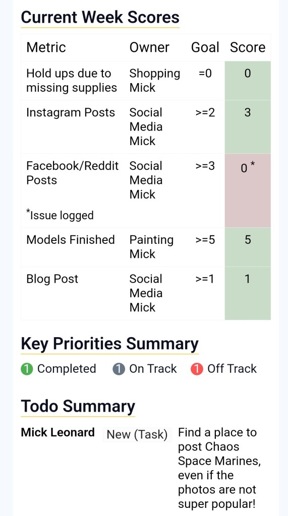 Welcome back to Hammer the Backlog, the weekly Wahammer (mostly!) mini painting, accountability and productivity blog. Each year I set myself some overall targets, then break those targets down in quarters. I then break those quarterly targets down into weekly steps, which I record here on this public blog, both to keep myself honest and to hopefully entertain and inspire you, the dear readers! This week has been an absolute slog of a week of HtB, let’s get into it and hopefully not be too negative!