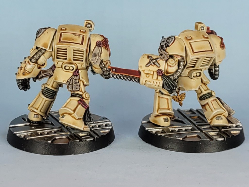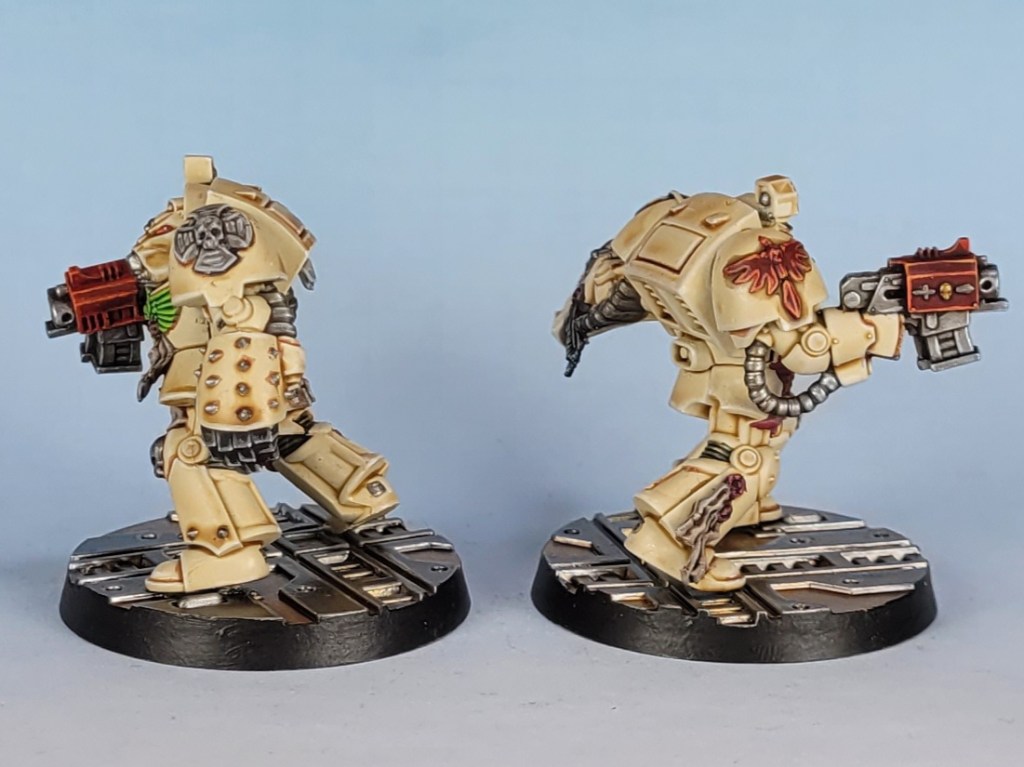 So this week’s models are the first two Terminators from the 2012 Dark Vengeance starter set. I picked this set up when it came out in 2012, considering myself, as I did at the time, a Chaos Space Marines collector. Little did I know that the models represented the first step in the change of style of Chaos Marines and I quickly lost interest in painting them.