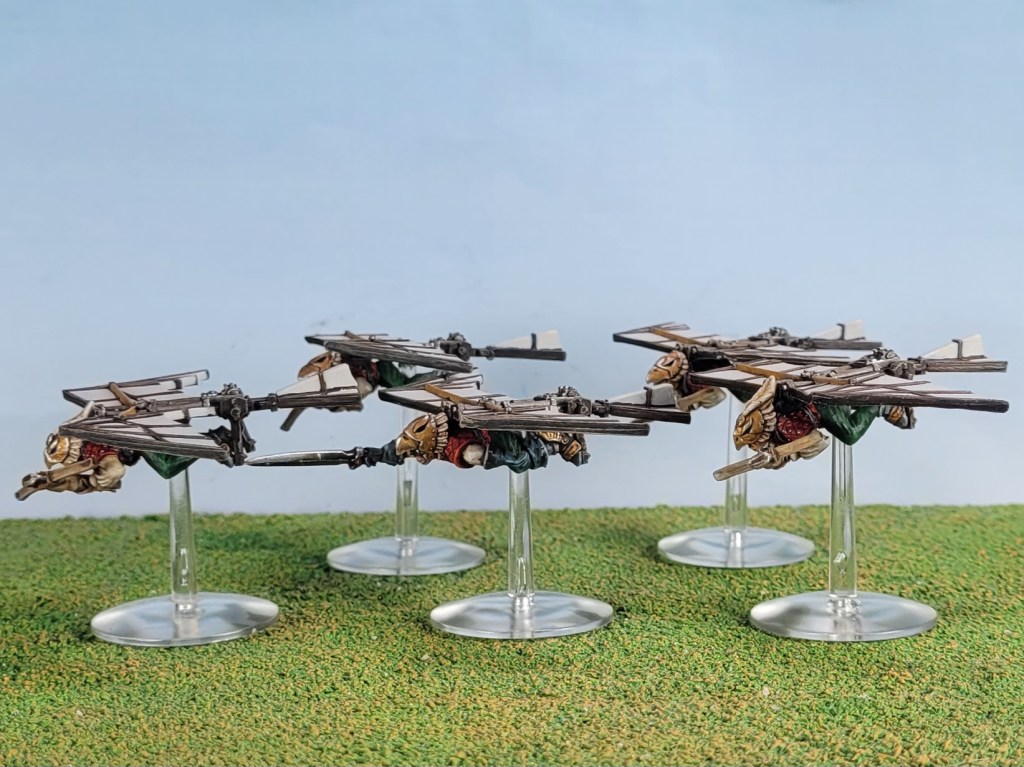 Looking at them with the rest of the army I feel like two points each wasn’t quite enough to do them justice. Another week to do some more highlights and to take down the starkness of the white wings might have been nice, but the backlog must be hammered, so onwards and upwards!