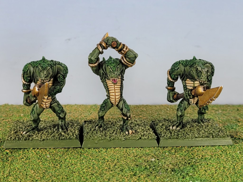 A fine week in the green this week, in terms of scorecard metrics, the amount of green paint on the models, and the amount of green paint on my hands. With 3 Kroxigors (hopefully) finished and photographed by the time you read this. That gives 6 Hammer the Backlog points of finished models. Nice.
