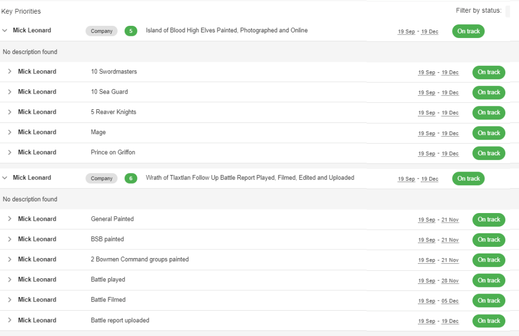 Welcome back to Hammer the Backlog, the weekly Wargaming mini painting, accountability and productivity blog, where this week we are getting a start on quarter 2 of year 3 of the project. As with every other time, a new quarter brings new quarterly rocks. Hammer the Backlog is all about me using the methodology of running a small to medium size business to keep myself productive and accountable. That basically breaks down into three main parts. Firstly, I have a weekly scorecard which keeps track of the health of the project. Green means things are going well, red shows what things might be slipping.