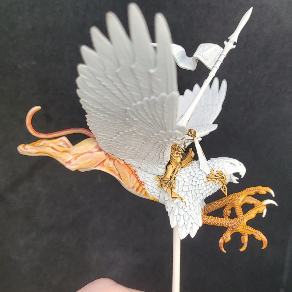 This griffon has been a hell of a thing to paint, with new colour schemes and techniques being needed at every step along the way.