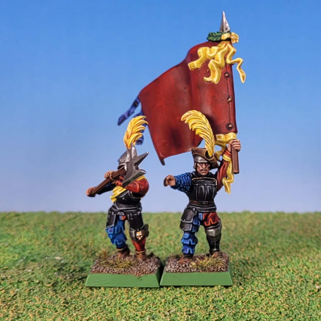 The banner bearer is not really, truly done, I suppose. Since in the end I want him to have the same banner as the art from the uniforms and heraldry book.