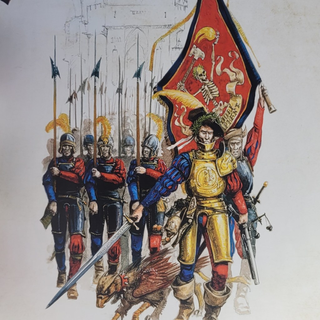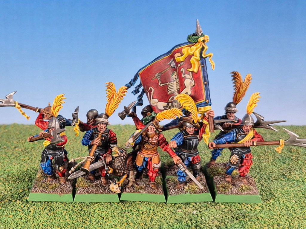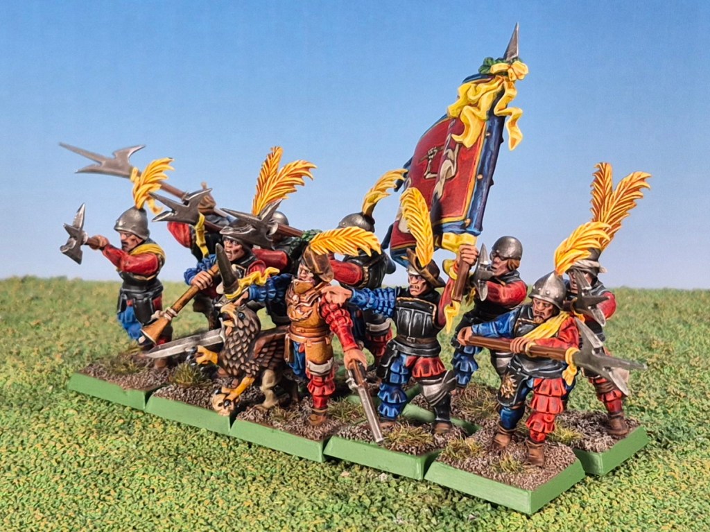 First of all, I got the musician and the final halberdier painted up for the company of honour. Nothing much to report on these two particularly. I think the musician uses most parts straight from the greatswords kit. It’s possible that only the head is a transplant from elsewhere.