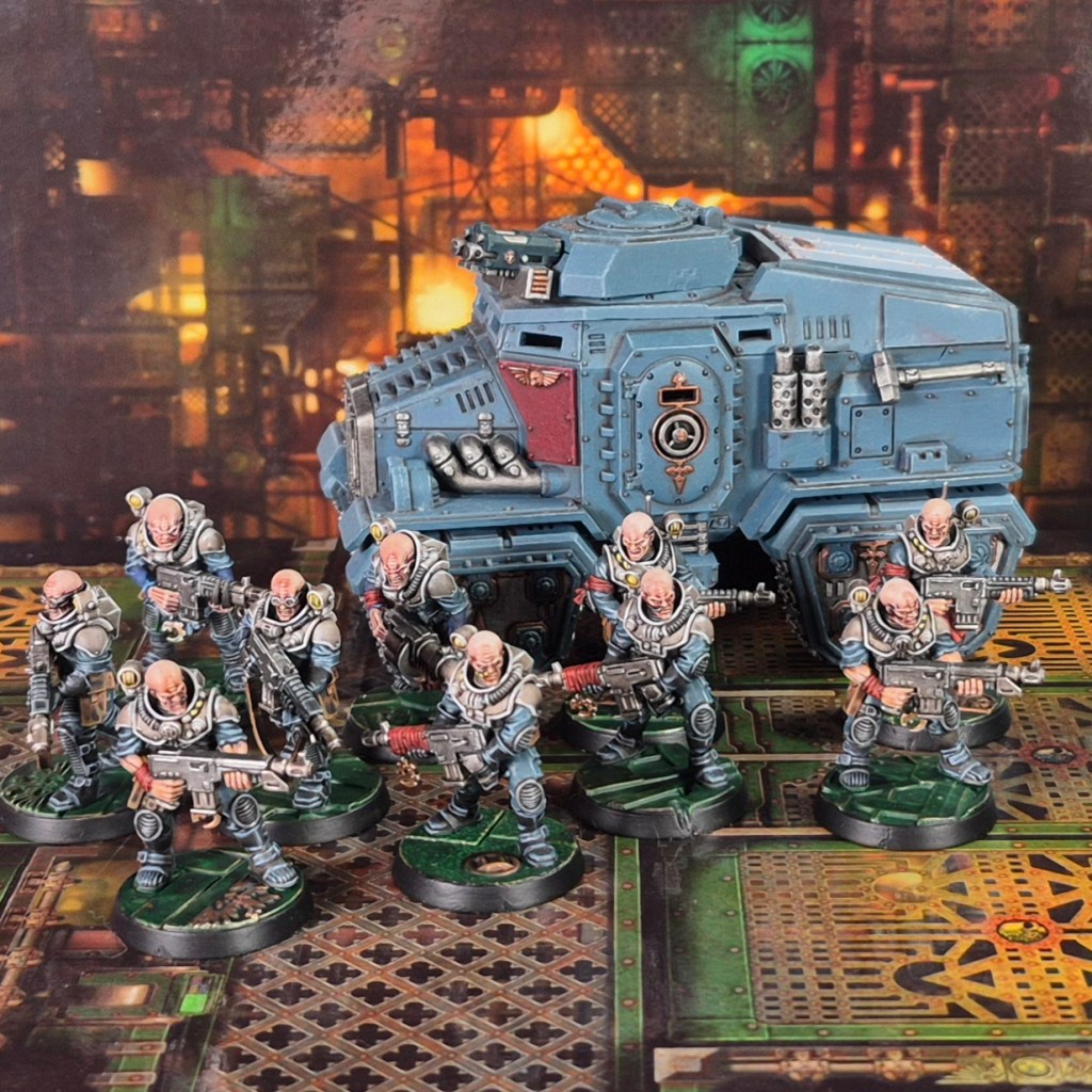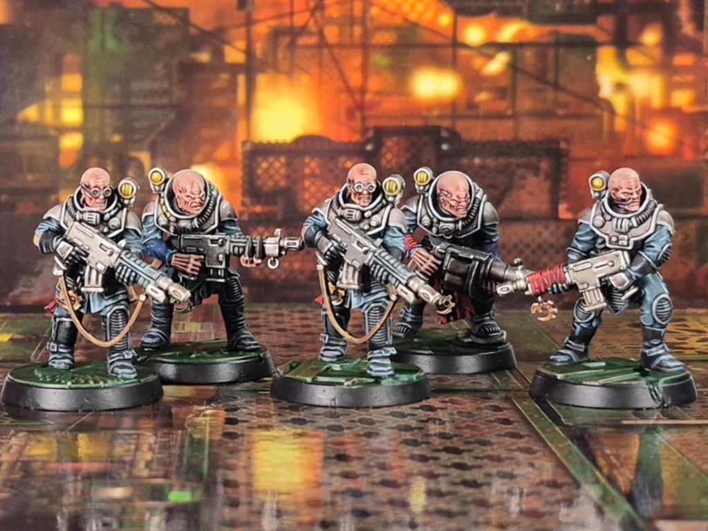 I painted these in the exact same way as last week’s models. I know the space suits and colour schemes were heavily inspired by the 80s and 90s genestealer cults, but they really do feel like they were designed to look good with modern paints, especially contrast.