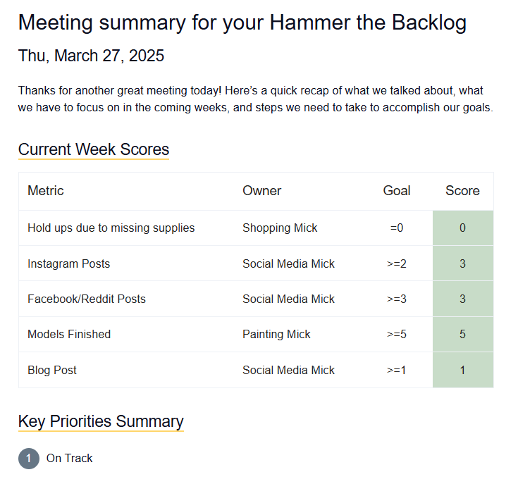 Let’s take a look at the weekly scorecard, progress on the quarterly rocks and this week’s models.