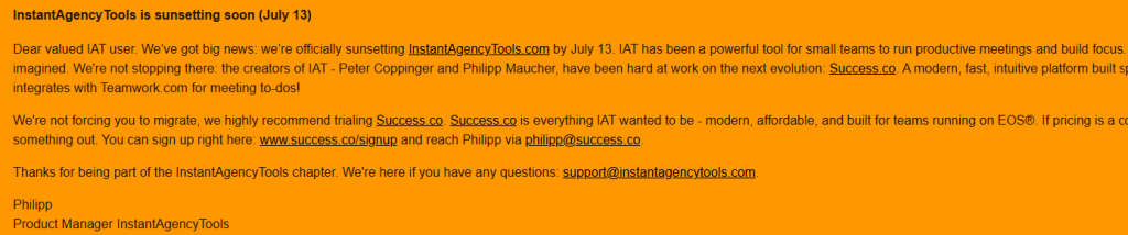 With the end of year 3 rapidly approaching it is a time of change. And no bigger change is coming than the fact that after 3 years of (pretty) reliable service, my free project management website, Instant Agency Tools, has announced that the are ending service, at more or less the same time as year 3 wraps up.