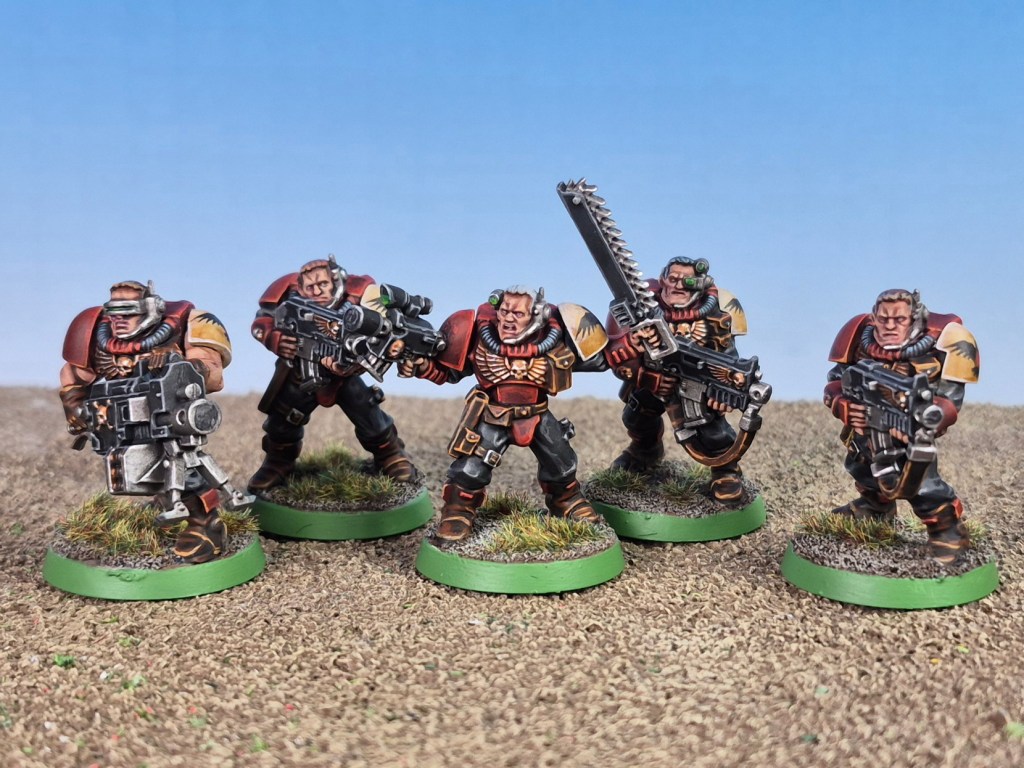 These were surprisingly fun and characterful models to paint. I’ve been tempted by doing a squad of them as Blood Angels ever since Lost Patrol was released, but I’m really glad I went with Blood Raves. The scheme suits them so well, and it is a really nice balance of dark but rich red, warm black and the really cool one shoulderpads and chapter icon.