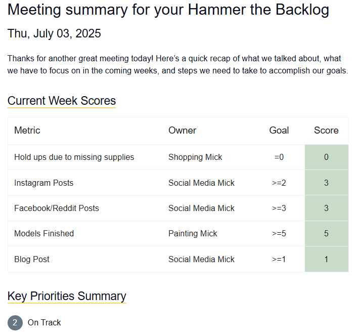 That puts progress at 30% by week three. With “only” 17 models left on the tray to do, it’s looking like this quarter is going to be a pretty easy home run in term of getting the goals done. He says, with hubris.