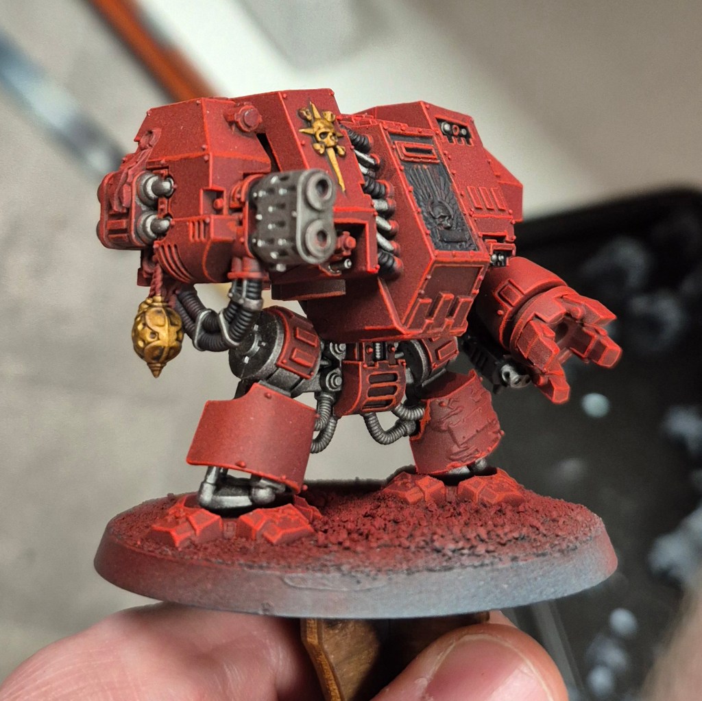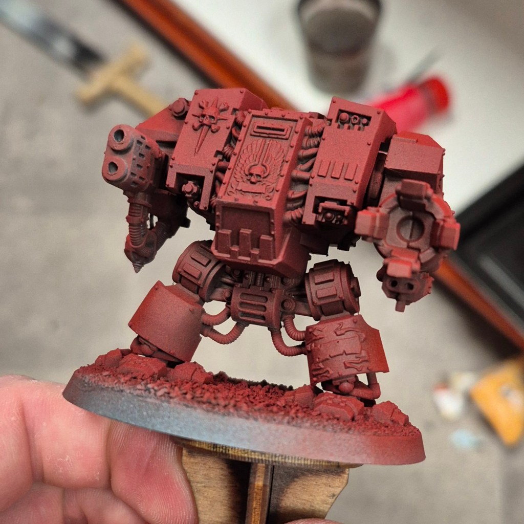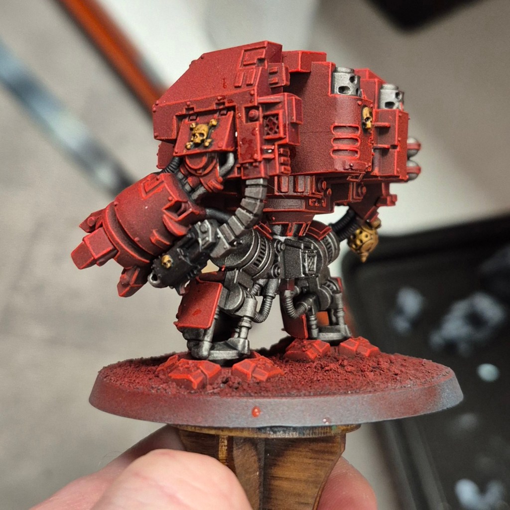 So, no finished model this week, just about 70% progress on my first ever old school dreadnought. I’ve painted a Hellbrute and a Redemptor dread before, but despite 30 years of looking at the things, this is my first time painting an old fashioned box dreadnought.