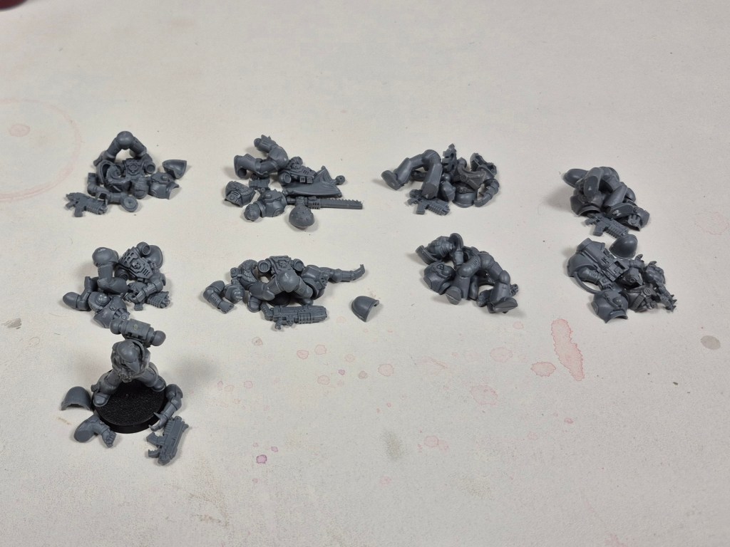 Some of them are still on sprues, some of them were started as ultramarines, some of them were cut off their sprues and it took my hours of rummaging through bits boxes to put them together, but in the end it turns out I have an entire second tray’s worth of Blood Ravens waiting for me for year 5! Yipee?