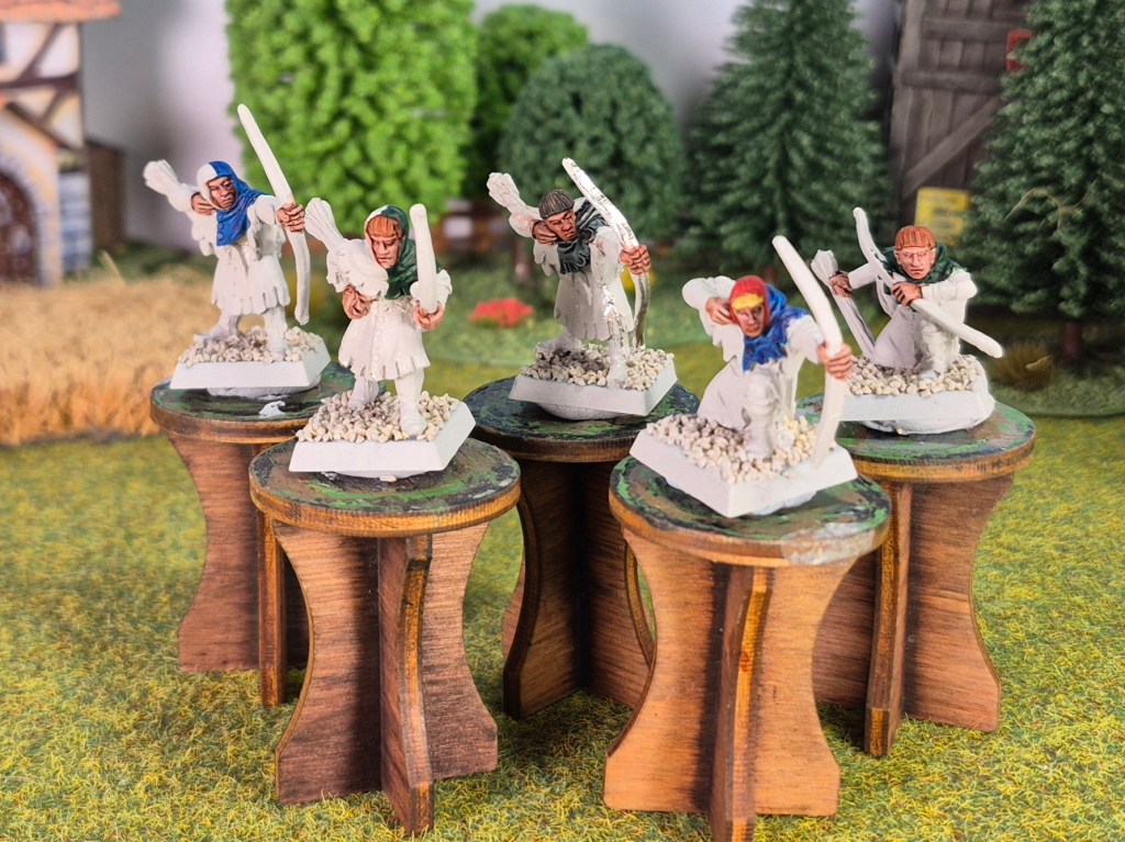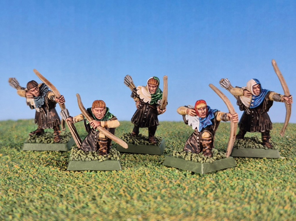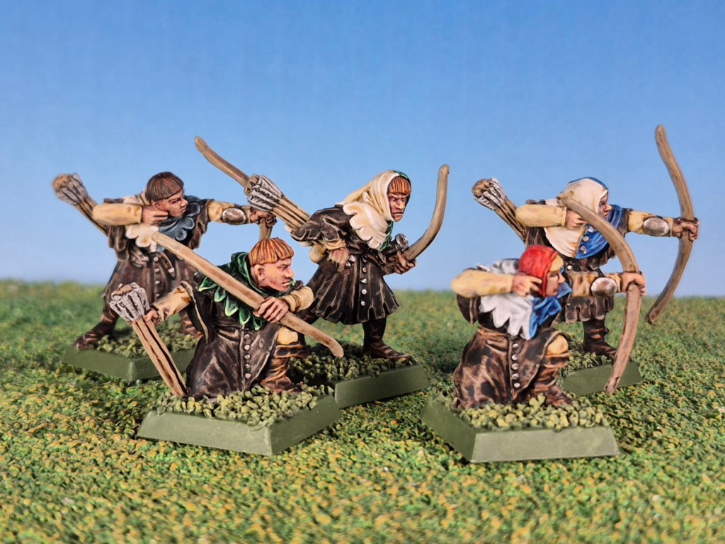 I decided to paint them as differently from my bowmen as I could, while still keeping them looking like they come from the same army. Especially since they really are very similar models, with broadly the same look, armour and equipment. In fact my bowmen command groups are actually squire command groups.