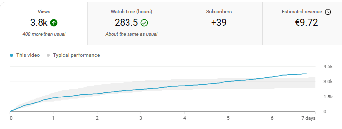 But to my surprise, the video seemed to find an audience and grow some legs, now breaking into the top performing videos after one week. Very strange indeed! Maybe the popularity or Orks vs Red Marines helped in some way?