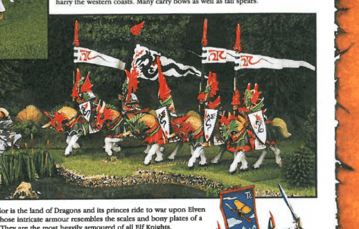 Then of course, there is the level of detail and fiddlyness on the model itself. Now, I didn’t make it any easier for going for the scheme I did. You might be able to paint these up much quicker just doing them in metal with a little bit of white and blue like the studio did, but of course in my head Dragon Princes have always looked like this shot of them in the 5th edition Battle Book, aka my introduction to Warhammer.